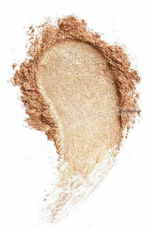Om de highlighter perfect te laten overlopen op je huid, breng je eerst een van onze minerale foundations aan. Sprenkel vervolgens een kleine hoeveelheid highlighter op het deksel en breng het aan met een kwast in cirkelvormige bewegingen. Schud de kwast af om overtollig product te verwijderen en breng de highlighter aan op de bovenkant van je jukbeenderen, wenkbrauwboog, cupidoboog, halslijn en schouders.