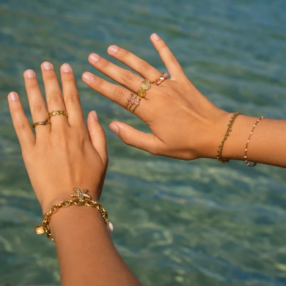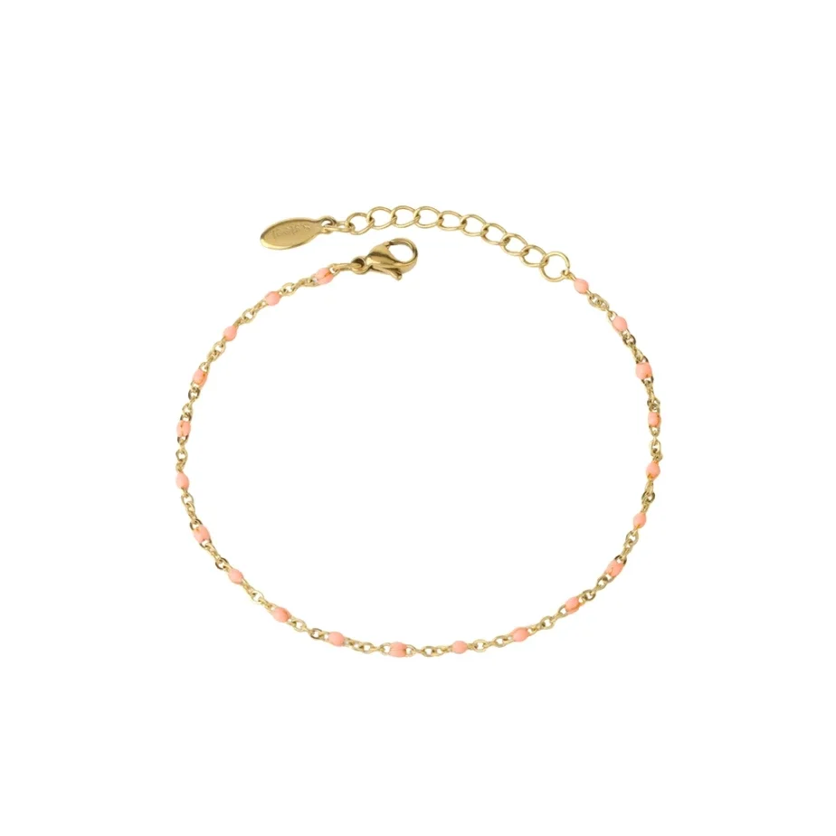 Voeg een vleugje kleur en glamour toe aan je stijl met deze speelse chloe armband. De smalle band is subtiel versierd met kleine gekleurde kraaltjes die een speelse, verfijnde uitstraling bieden. Ideaal om solo te dragen of te combineren met andere armbanden voor een trendy look. 100% waterdicht! * Materiaal: roestvrij staal * Afmeting: 16,5 + 3 cm