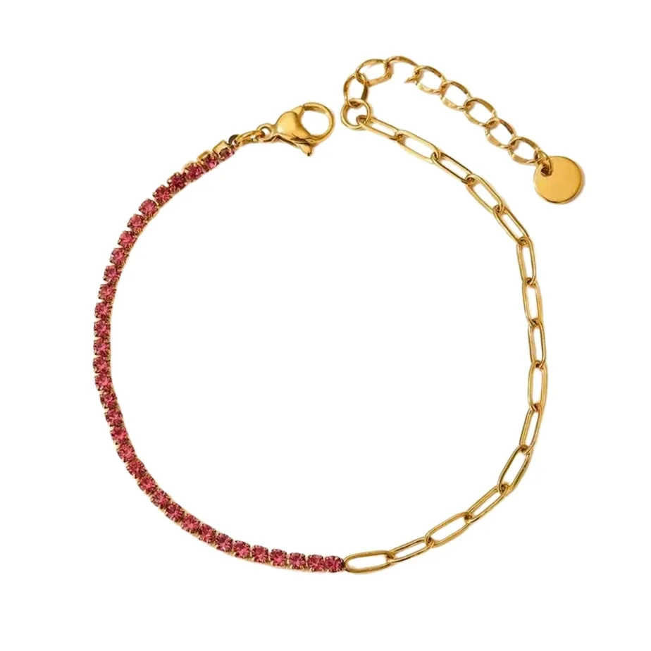 Deze prachtige natalia armband is een musthave voor je sieraden collectie! De armband bestaat uit schakels en shiny zirkonia steentjes. Beschikbaar in verschillende kleuren en volledig waterproof. Mix and match met een van onze andere armbanden voor een kleurrijke look. 100% waterdicht! * Materiaal: roestvrij staal * Afmeting: 17 + 3 cm