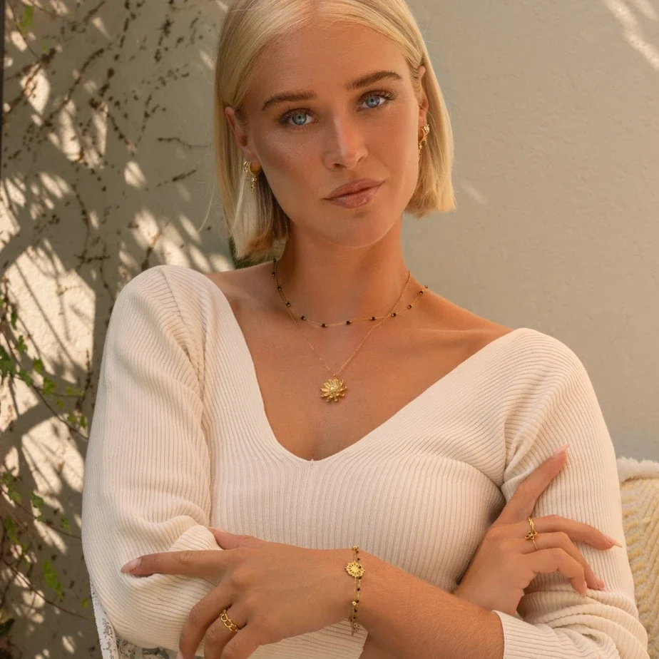 Deze elegante kiara ketting met fijne, zwarte kraaltjes is een perfecte mix van minimalisme en stijl. Het subtiele ontwerp maakt het een veelzijdig accessoire dat je met elke outfit kunt combineren. 100% waterdicht! * Materiaal: roestvrij staal * Afmeting: 45 + 5 cm
