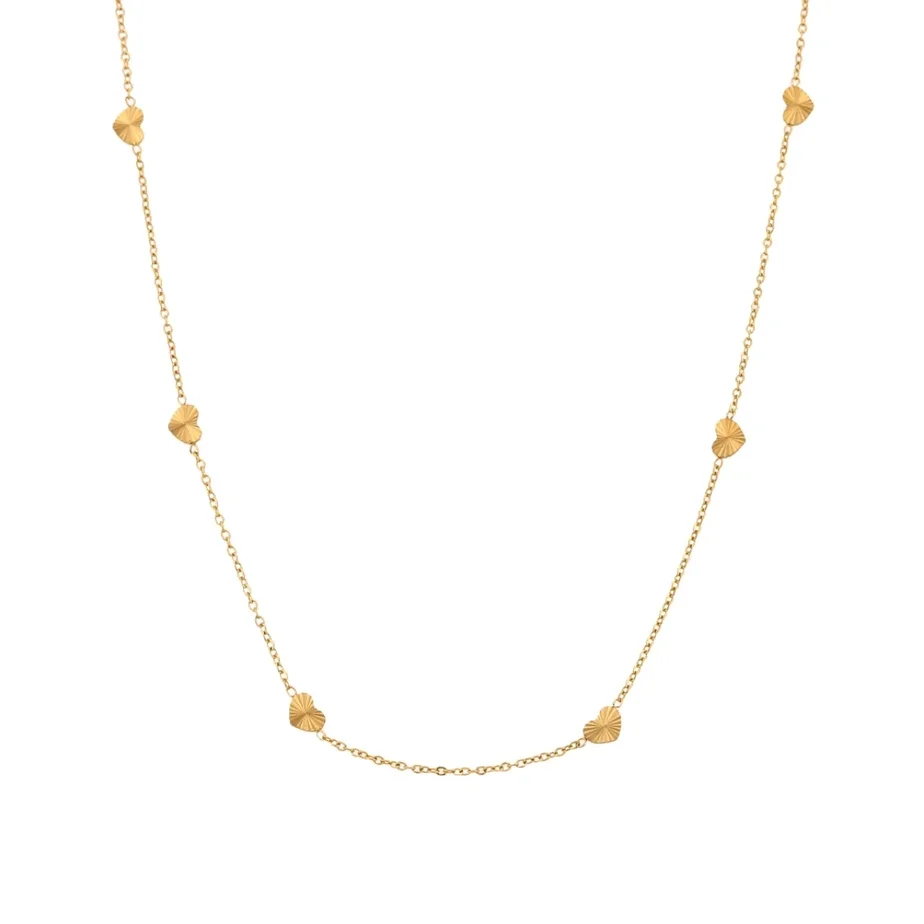 De ketting tiny hearts biedt een subtiele en verfijnde manier om je liefde voor sieraden te tonen. Perfect om je outfit een romantische afwerking te geven. 100% waterdicht! * Materiaal: roestvrij staal * Afmeting: 40 + 5 cm