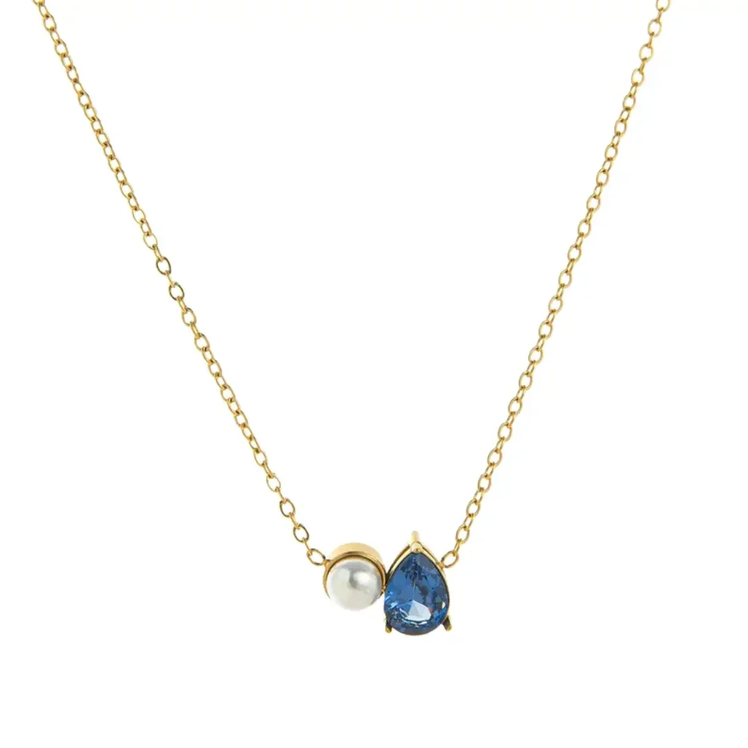 Deze prachtige victoria ketting combineert een glinsterend gekleurd steentje met een verfijnde parel. Een tijdloze en chique toevoeging aan je sieradencollectie! * 100% waterdicht! * Materiaal: roestvrij staal * Afmeting: 45 + 6 cm