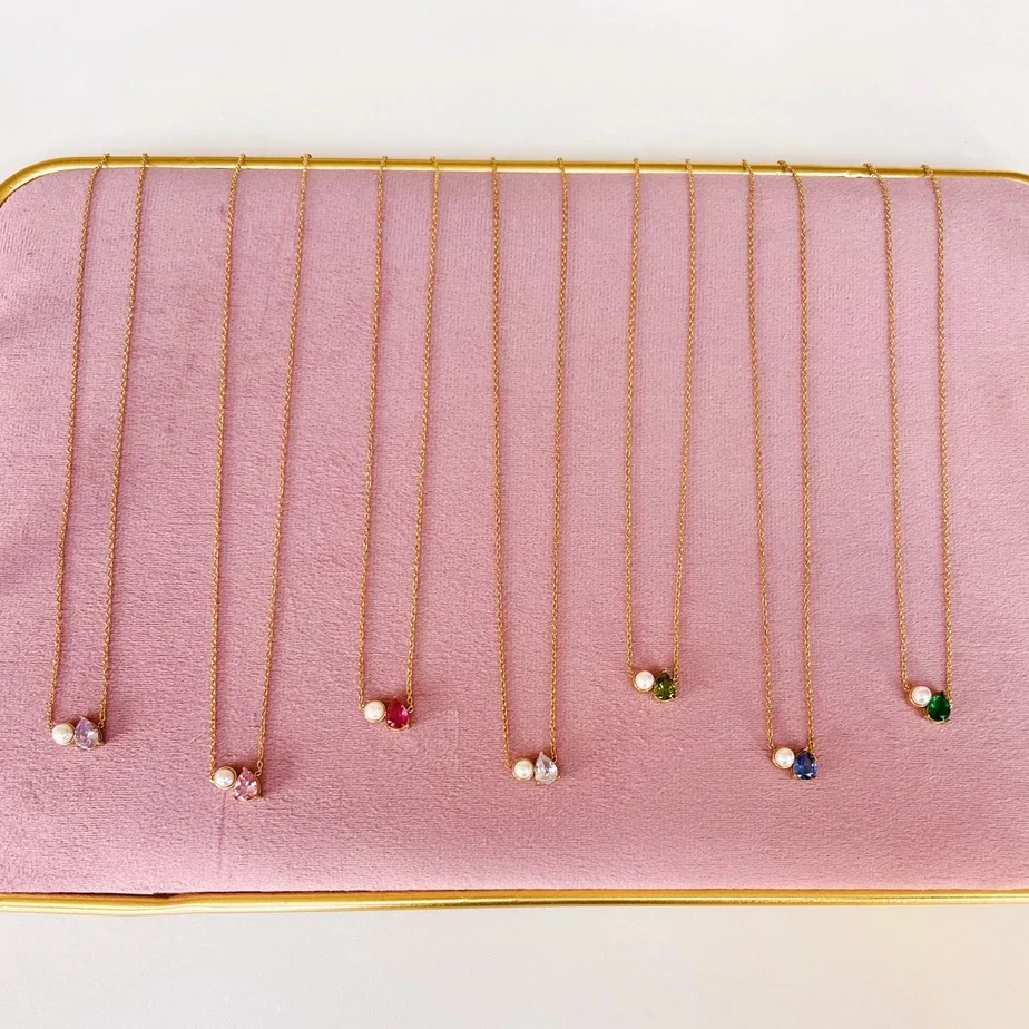 Deze prachtige victoria ketting combineert een glinsterend gekleurd steentje met een verfijnde parel. Een tijdloze en chique toevoeging aan je sieradencollectie! 100% waterproof! * Materiaal: stainless steel * Afmeting: 45 + 6 cm