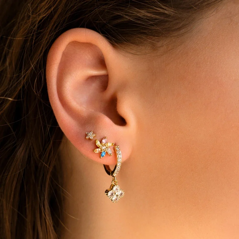 De eliana oorbellen geven je look een zachte, romantische touch. Met hun fijne bloemdesign zijn ze perfect voor een subtiele, elegante uitstraling! Materiaal: Sterling zilver, 18K goldplating * Afmeting: 2,4 cm NOTE: Oorbellen kunnen i.v.m. hygiëne niet geretourneerd worden.